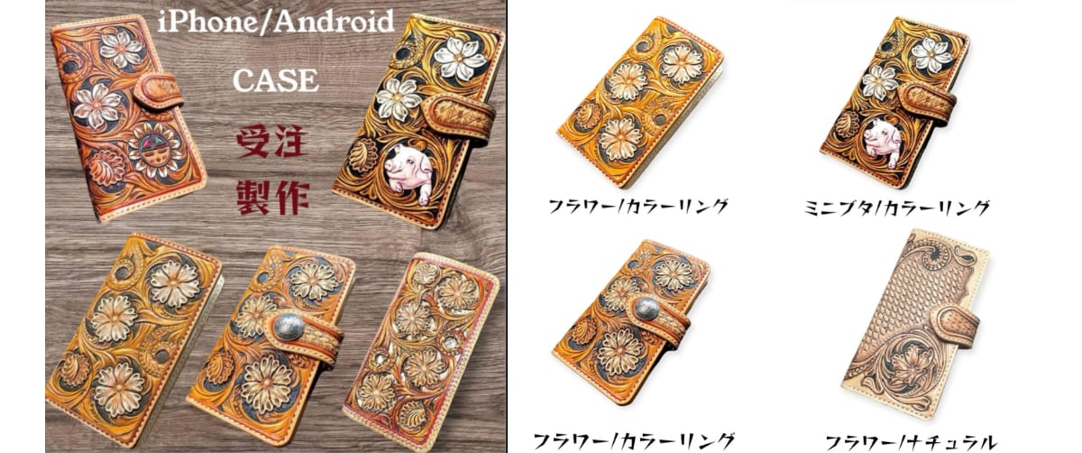 レザーカービング ミドル トラッカーウォレット ハーマンオークツーリングレザー フラワー/カエル ピンク デザイン:参考画像にて (仕様に合わせて調整必要) サイズ:縦約90ミリ×横約130ミリ厚さ 約30ミリ 仕様:•コインケース •カード入れ2箇所 •フリーポケット2箇所 (紙幣は折らずに収納可能) オーダー価格:29,800円 打合せ完了後に金額変更致します。 ご購入頂いてからの製作開始となり、製作期間は14日程度を予定しております。 【注意事項】 •革は天然素材のため、シワ•キズ等の天然故の個体差がございます。それぞれに味のある個体として、使い込むほどに変化する風合いを楽しんでいただければと思っております。 •製造過程で多少の当たり傷・押し跡・擦り傷などが付く場合があります、あらかじめご了承ください。 •全てオリジナルのハンドメイド品です、上記点をご理解いただき、ご検討の程宜しくお願いいたします。 •色味につきましては、閲覧環境によって実際の商品の色合いと異なって見える場合がありますのであらかじめご了承ください。 •その他、気になる点がありましたらご注文前にお気軽にご質問ください。
