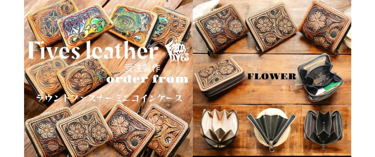 【受注製作】 レザーカービング Lファスナーウォレット ナチュラル ページ下部にある、 •WEB:【ショップに質問する】 •PayID: 【商品について質問する】 からお問い合わせください。 ハーマンオーク社のツーリングレザーにフラワーと蔦のカービングし製作したオリジナルのLファスナーウォレットです。 中央にマチ付きのコインケースと両側にカード入れが各2箇所あります。お札は折らずにコインケース下に潜らせるか、左右に二つ折りで収納可能です。 サイズ:縦100㍉×横110㍉×厚さ24㍉ デザイン:フラワー/ナチュラル 仕様:Lファスナーコインケース •コインケース×1 •カードケース×4 【注意事項】 •革は天然素材のため、シワ•キズ等の天然故の個体差がございます。それぞれに味のある個体として、使い込むほどに変化する風合いを楽しんでいただければと思っております。 •製造過程で多少の当たり傷・押し跡・擦り傷などが付く場合があります、あらかじめご了承ください。 •全てオリジナルのハンドメイド品です、上記点をご理解いただき、ご検討の程宜しくお願いいたします。 •色味につきましては、閲覧環境によって実際の商品の色合いと異なって見える場合がありますのであらかじめご了承ください。 •その他、気になる点がありましたらご注文前にお気軽にご質問ください。 #Fivesオーダー #オリジナル #レザーカービング #L字ファスナー #コインケース #ウォレット #レザークラフト #レザーカービング