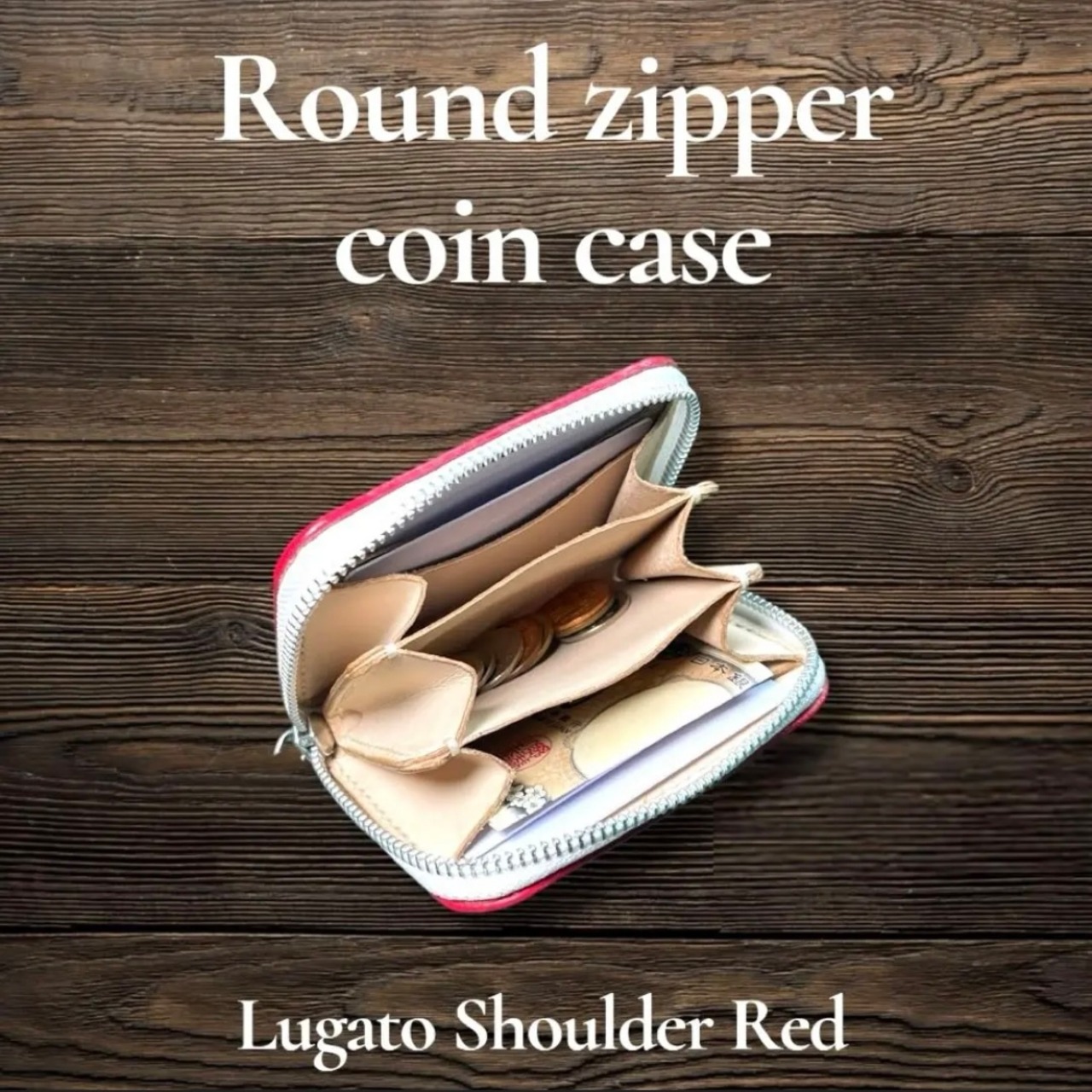 赤のルガトショルダーで製作したラウンドファスナーのコインケースになります。