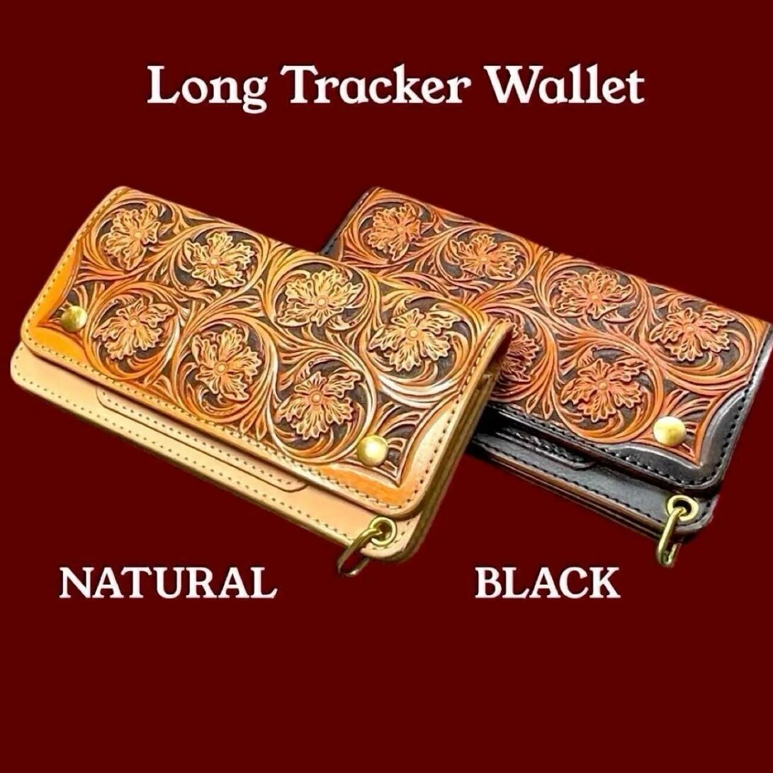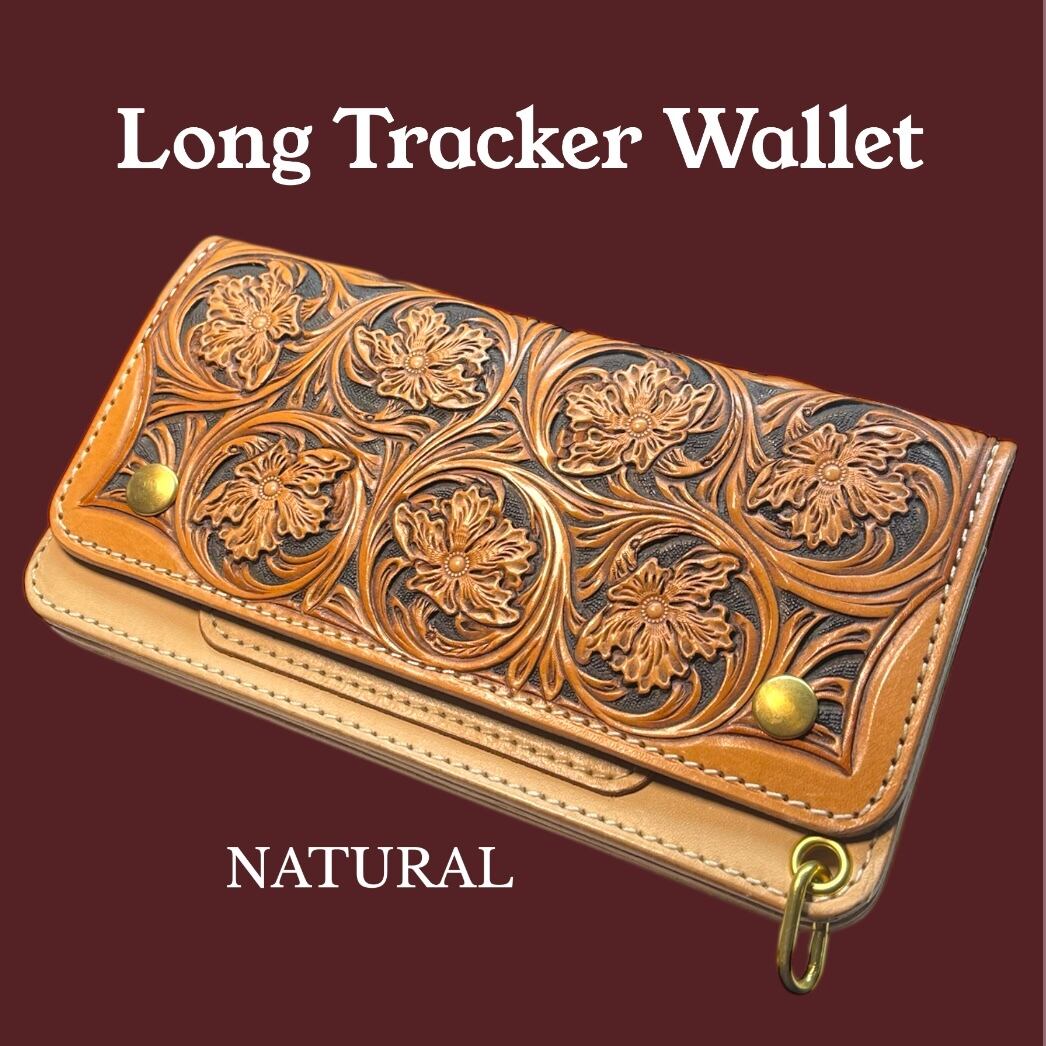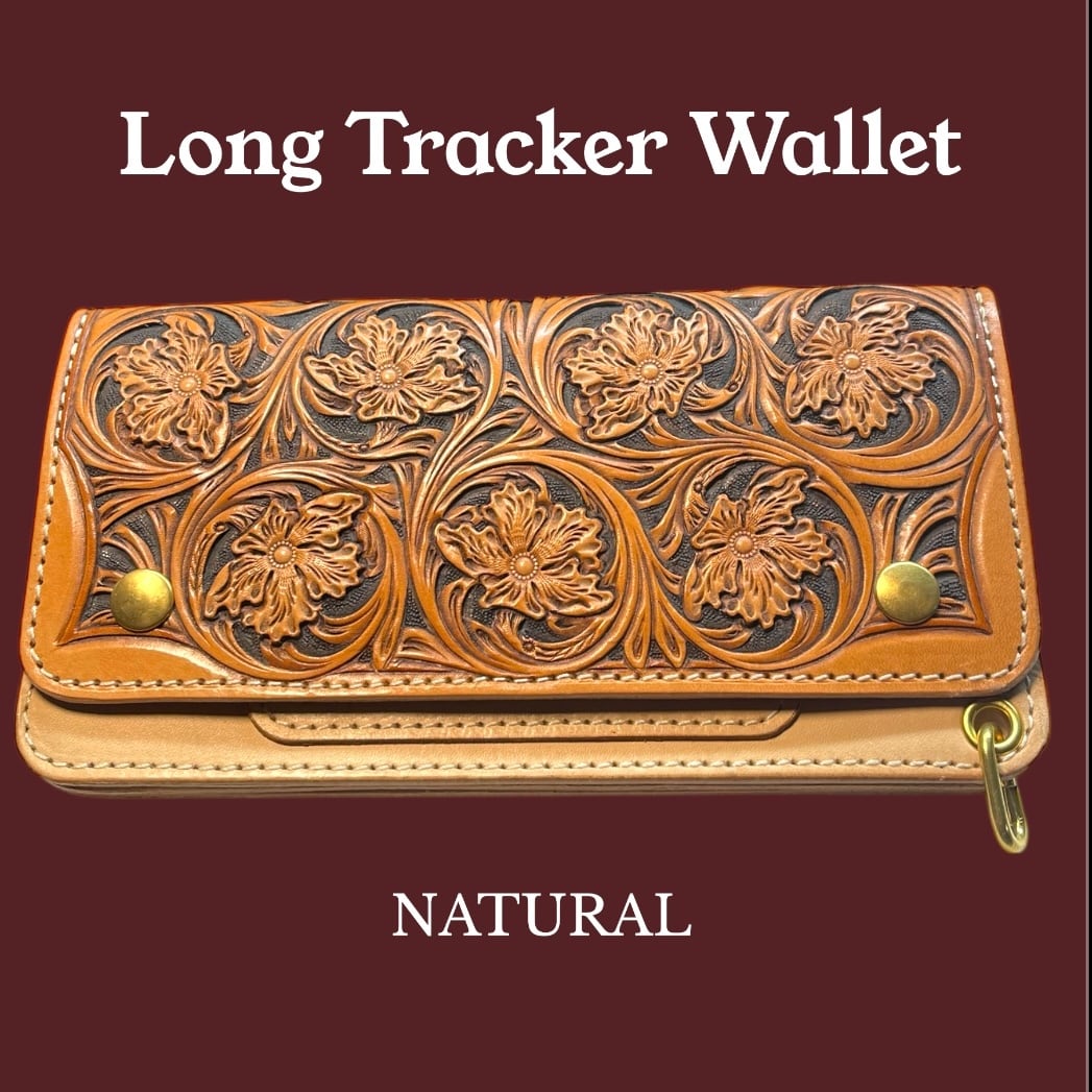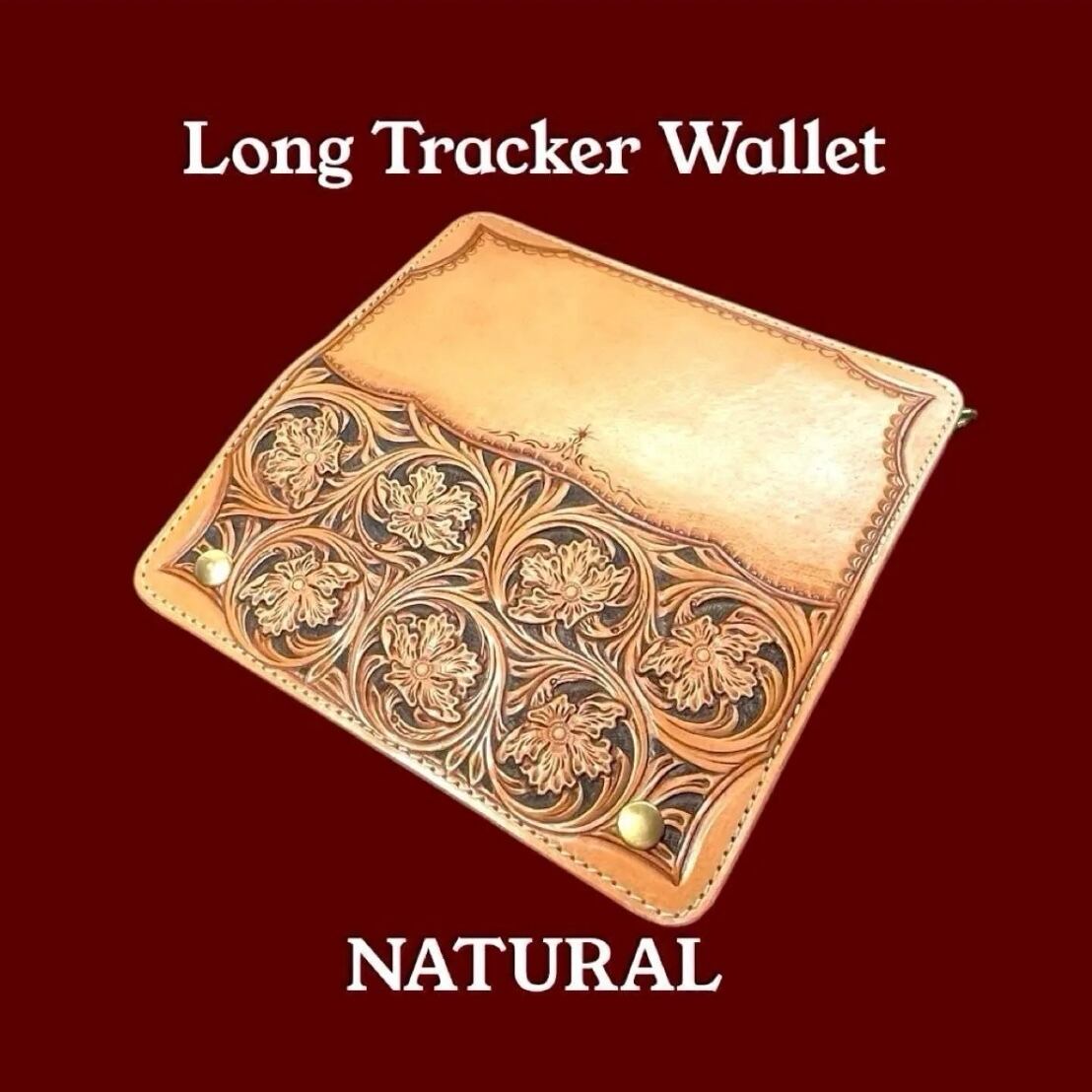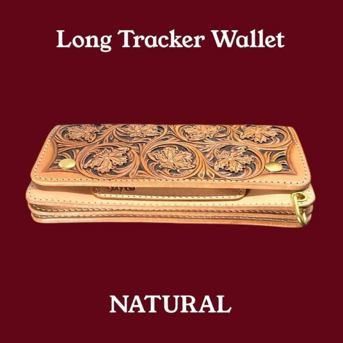 レザーカービング ロングトラッカーウォレット フラワー ナチュラル