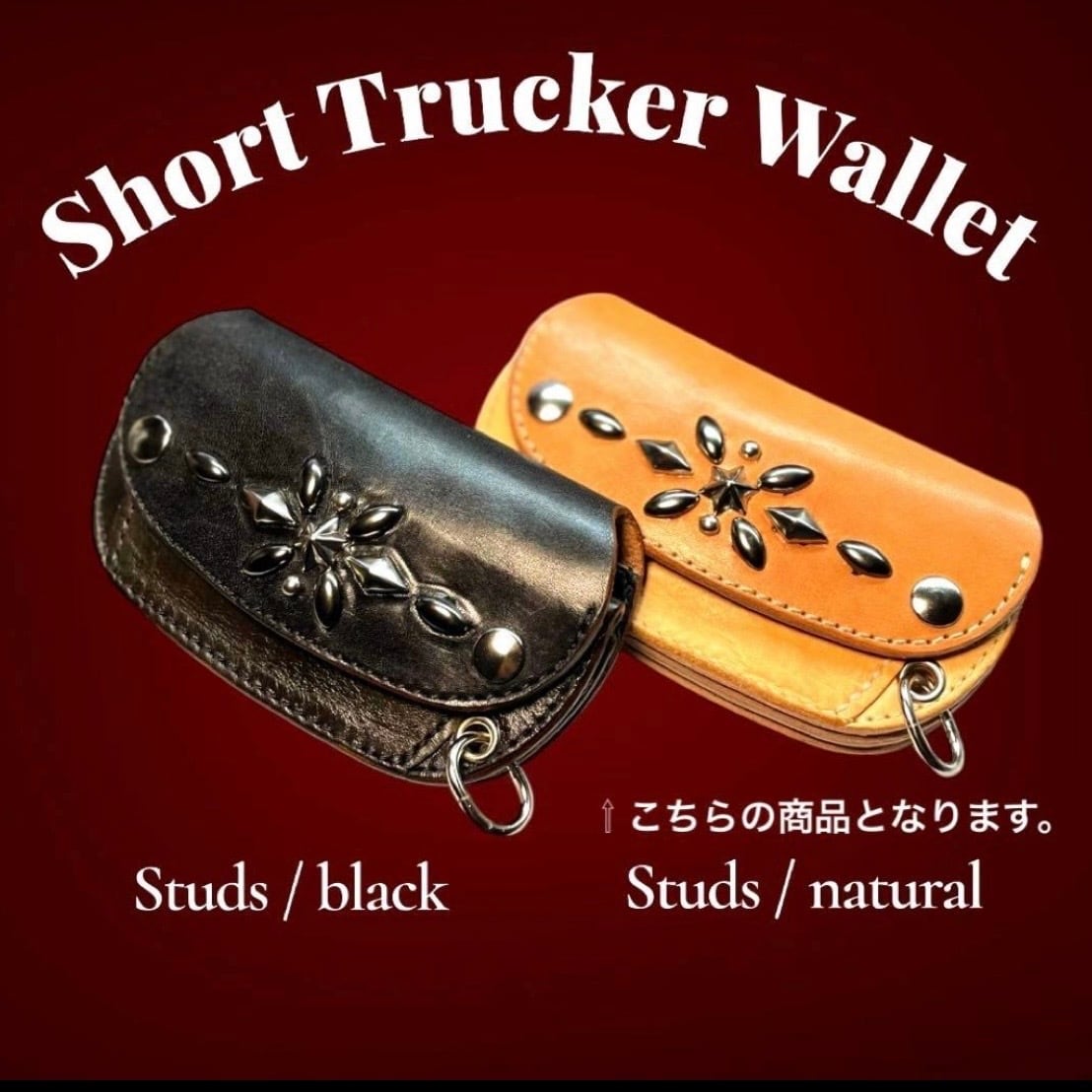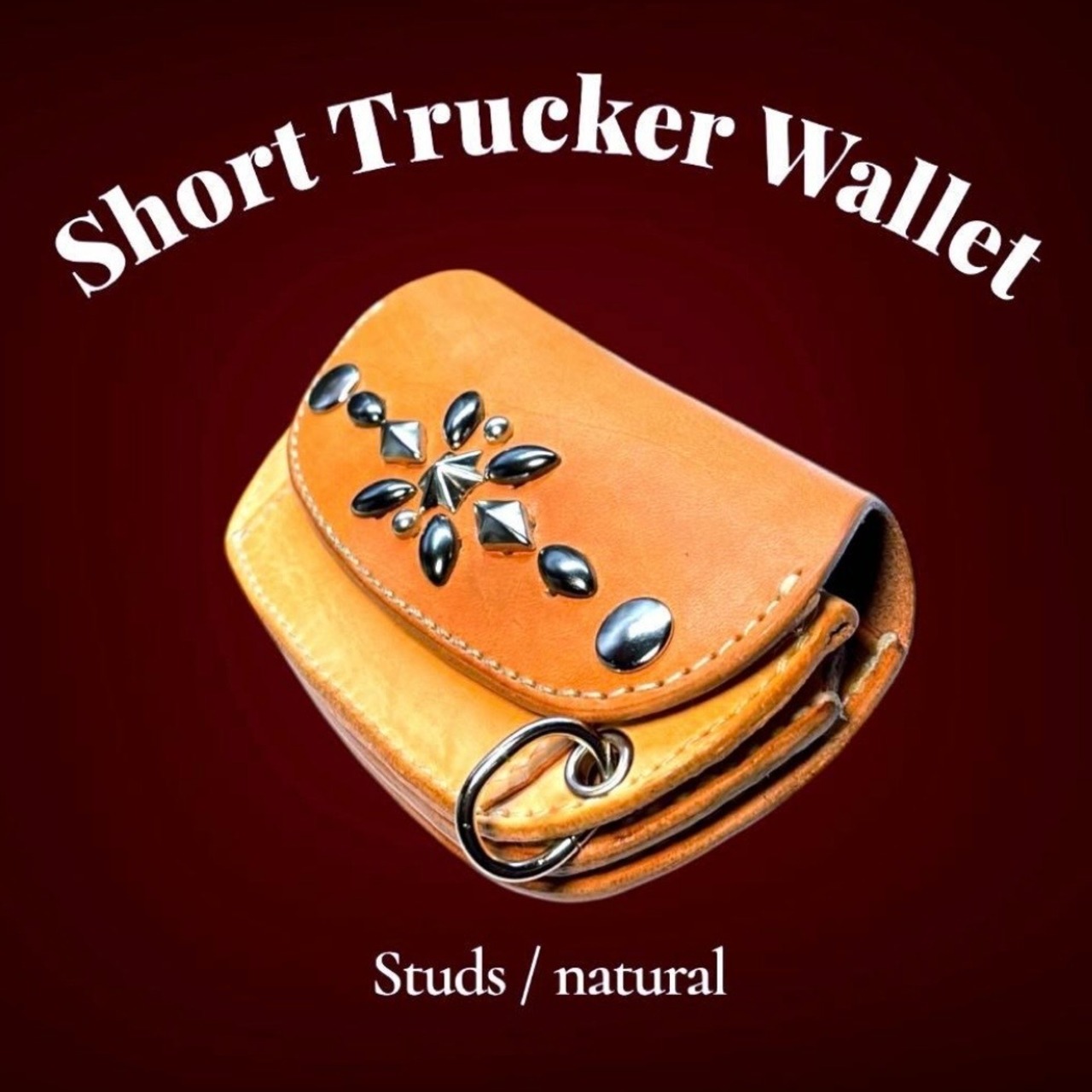 サドルレザーにアポロスタッズと周囲を装飾し製作した、丸みフォルムのトラッカーウォレットです。